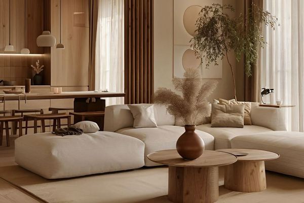 Cách bố trí nội thất cũng quyết định mức độ đồng bộ. Bố cục mở phù hợp với những không gian nhỏ, giúp tăng cảm giác rộng rãi và kết nối. Bố cục kín tạo sự riêng tư và ấm cúng cho không gian lớn. Ngoài ra, nguyên tắc cân bằng – đối xứng hoặc bất đối xứng có kiểm soát – sẽ giúp không gian tránh cảm giác lộn xộn.