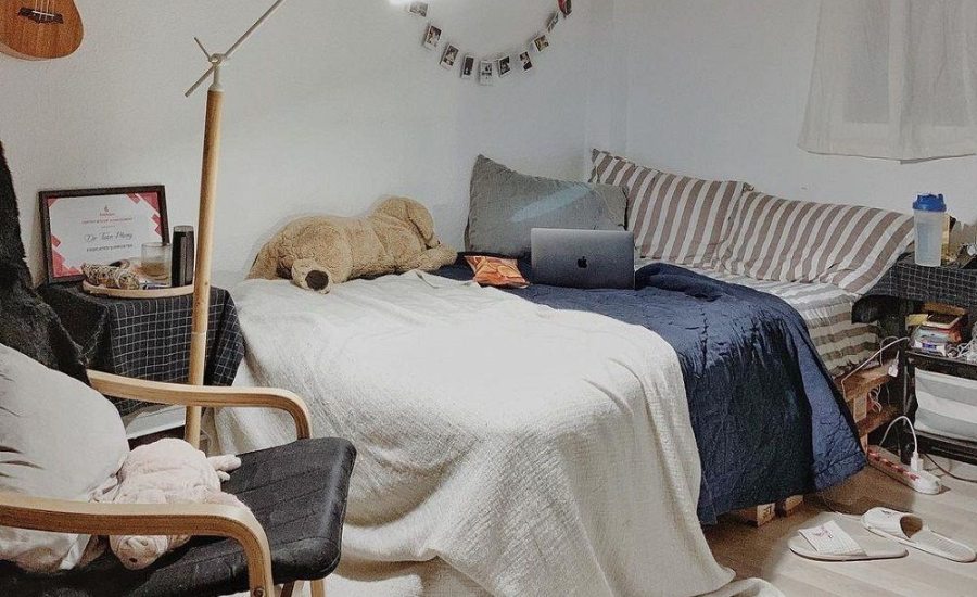 Nếu bạn không có chỗ cho một chiếc bàn cạnh giường ngủ. Thay vào đó, hãy chọn một chiếc ghế đầu nhỏ xinh để đặt vài cuốn tạp chí. Nếu các thiết bị điện tử không vừa với không gian sẵn có, bạn cũng có thể tối ưu bằng màn hình phẳng gắn ngay lên tường hoặc kệ sách. Đừng cố gắng lựa chọn vật dụng có kích cỡ to, hãy cố gắng lựa chọn những đồ phù hợp, hài hoà với diện tích của nhà bạn.